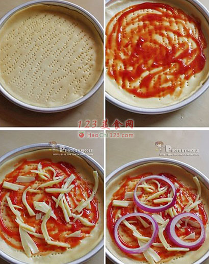 8、放上洋葱圈。