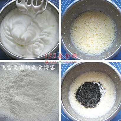 3、模具不一样,做出来的戚风蛋糕也不太一样。今天用的是黑芝麻,加了黑芝麻的蛋糕看起来就是那么的香。[LaoYanHuo.com]