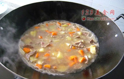 10、重新开火,中小火5分钟。注意要中途搅拌下,避免烧焦。烧到浓稠就可以关火,享用了(不需要加盐巴等调料了,咖哩块本身已经有足够的味道了)。