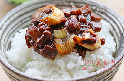 3、不喜欢大葱的,可以用洋葱代替,做法稍有不同,需将洋葱切末与生姜一同下锅炝炒,使其出香,再与肉同炖煮,这样口感会非常溶合。