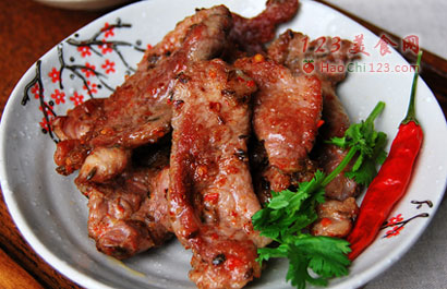 11、梅花肉即猪的上肩肉。据说每只猪身上的这块肉只有五六斤,大约有二十厘米长,横切面瘦肉占90%,其间有数条细细的肥肉丝纵横交错,所以吃的时候特别嫩而且香,更是一点也不油腻,其肉质鲜美可口,久煮不老。[LaoYanHuo.com]