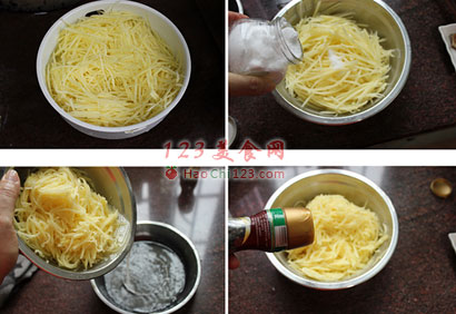 1、这款土豆饼就什么都不用加。由于土豆富含淀粉,受热后本身的淀粉会有粘性,所以,这个土豆饼是不会散掉的。