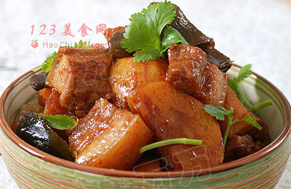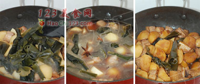 2、炖这种需要大火收汁,使得汤汁粘稠的菜,不用太小的火,可多加水,用中火一直保持大花翻滚的状态,炖出来的菜才香浓而不水。
