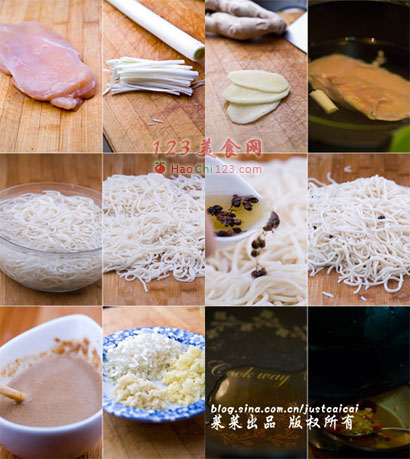 3、我看过一些鸡丝凉面的做法,少了花椒油浇的步骤,这可是制作这道鸡丝凉面好吃的关键程序,一定不要省,晾晒过的面飘着一股花椒香,口感不麻,放心吧。
