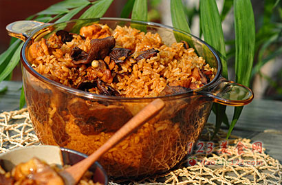 3、松蘑是较珍贵的菌种,有特殊香味,和鸡肉腌渍在一起,提香作用很明显,煲仔饭做好后开盖,家中会立即香味四溢。