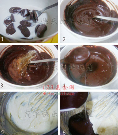 2、搅拌至巧克力完全溶化,呈现光滑细致的状态。