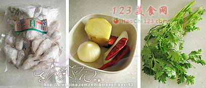 [LaoYanHuo.com]2、香菜切段,葱、姜、蒜切粒,干红椒切小段,花椒备好。