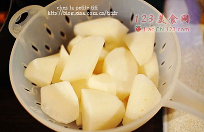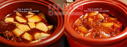 5、当牛腩牛杂焖煮一小时后加入萝卜同煮一小时即成。