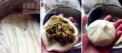 8、送上南方人的面食,里面的馅料超有地方特色,这是我们温州当地人最爱的一种馅料调配,这里我透露一下它们的配料,酸菜,豆干,猪肉,虾皮,青蒜,这几样食材配在一起,特别的鲜香,特别的有味。
