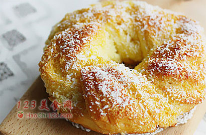 5、发酵至两倍大后,表面刷全蛋液,并撒一些椰蓉,入炉180度20-25分钟。
