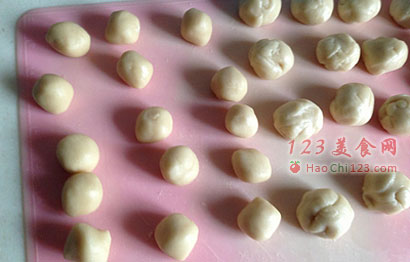 7、所有包好的蛋黄酥摆入铺好烤布的烤盘。
