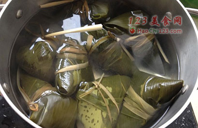 8、煮粽子要水热了后在放入粽子,就是水温大概70度的时候就可以放入锅里了,水最好浸没过粽子,我家的烧锅大概1个小时,就可以了。