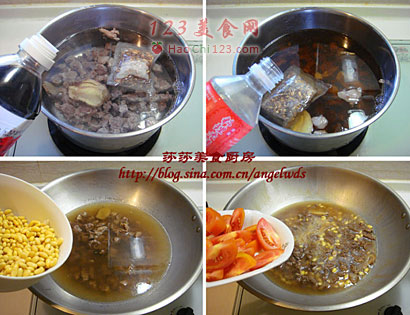7、这道西红柿黄豆炖牛腩是跟俺娘学的手艺,俺娘经常做因为俺爹爱吃。西红柿在这里一定不能少,加了西红柿的酸味才是这个菜的点睛之笔!如果不加味道会逊色很多平平淡淡。[LaoYanHuo.com]