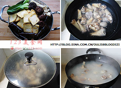 5、将事先熬好的棒骨高汤浇在火锅里,吃的时候点火,煮到所有素食成熟,放入少许盐、辣椒油等调味即可(如果不想这样吃,可以去掉辣白菜这材料,出锅后蘸麻酱小料也可)。