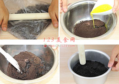 [LaoYanHuo.com]2、把奥利奥饼干碎放入保鲜袋中,用擀面杖碾压至小颗粒。