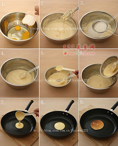 1、这款松饼用的是蛋糕的方子,没有添加泡打粉;所以蛋液的打发就相当的关键,一定要将蛋液打至呈非常细腻的乳白色;提起打蛋器后滴下的蛋液不会消失融入盆里的蛋液中时才行;成功打发的蛋液在筛入面粉后蛋液表面基本上不会塌陷;如果在拌入面粉后面糊表面不断有较大的气泡冒出,则说明蛋液没有打发成功哦;可在打发蛋液的时候将打蛋盆放入60度左右的热水中,这样更利于打发。