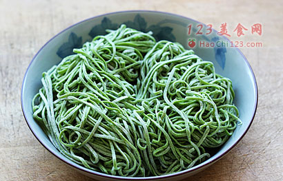 5、煮菠菜面的时候,比煮干挂面要时间短些,这样煮好的面条才会筋道,喜欢吃过水面的可以过水。