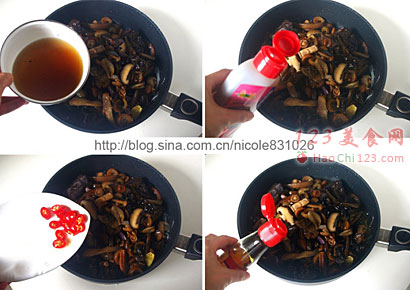 7、再放入切片的香菇、小蘑菇和黑木耳。