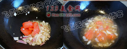 3、加入西红柿块。