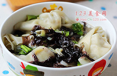 4、煮馄饨的时候水要多一些,并用勺背轻推,防止馄饨粘锅底,馄饨汤的配料随自己喜欢,爱吃辣的可以调个酸辣汤。[LaoYanHuo.com]