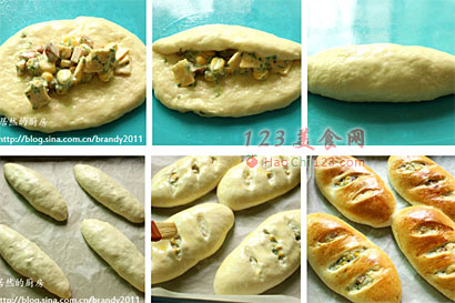 7、全部做好以后,放入38度,湿度大约80%的环境中发酵40分钟,面包表明用刀片割几道,让馅儿能若隐若现的就好。