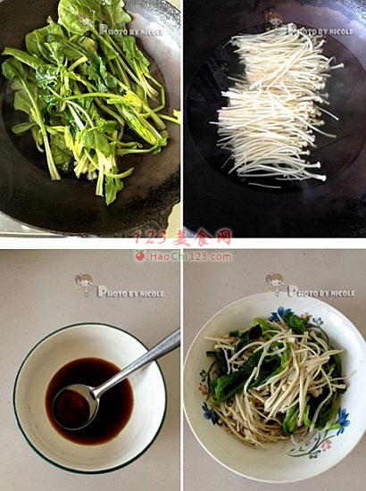 5、金针菇也是我非常喜欢的菌类之一,特别是涮火锅的时候,一定不能缺少了它。虽然很多人觉得它不易消化,但它爽滑的口感还是令我着迷。更何况,金针菇可以补益肠胃,与菠菜相遇,信手拈来,却不失为一款排毒效果极佳的清爽小菜,正适合节后的我们。[LaoYanHuo.com]