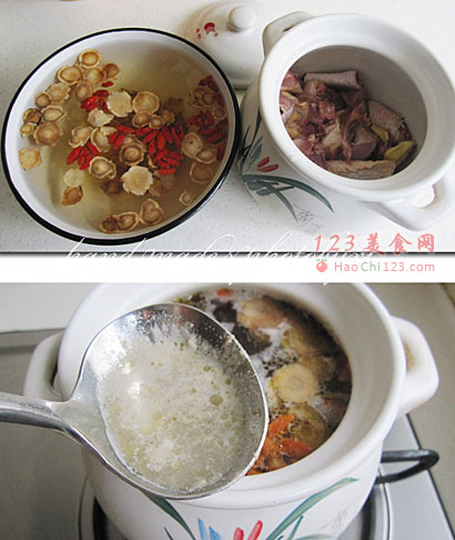 2、煲汤的过程中要用勺子把表面浮漠及时撇出,这是鸡汤清澈的关键。