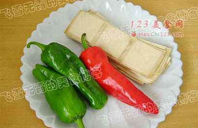 5、将白干丝,青红椒丝,加入调味料搅拌好即可。