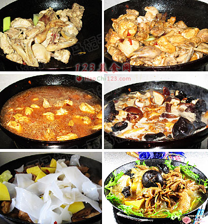 15、倒入泡香菇和泡茶树菇的水。烧开,转小火焖至10分钟。