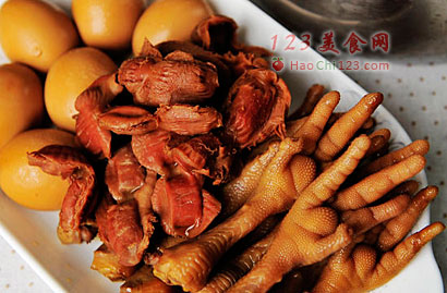 贴士:鸡爪比鸡胗易熟,可以后放鸡爪,也可以同时放,但要记着把鸡爪提前取出,关火之后再放入卤水中浸泡;鸡爪煮久了,没有嚼劲。[LaoYanHuo.com]