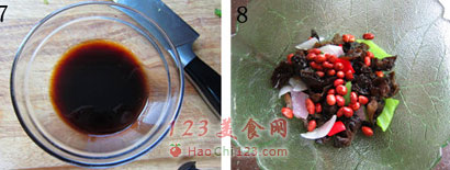 8、木耳、配菜和花生米一起放进大碗。