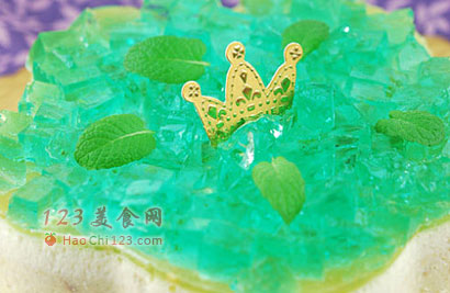6、凝固后,用刀划成小块,或者用勺子捣碎均可。放到冷却了的慕斯上装饰即可。