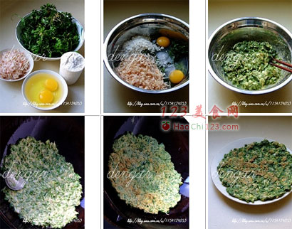 3、各种原料的用料可以根据自己的喜好自由裁剪添加,我其实用了三个鸡蛋,完全用蛋液搅的面糊,这样比添加水来的更香。