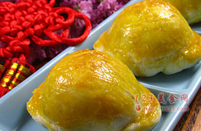 5、在表面上刷层蛋黄液,放入预热好的180度烤箱中,中下层,30分钟;拿出来,表面上再刷层蛋黄(因为第一刷的蛋黄颜色偏淡),放入烤箱中上层两分钟即可。当然这是因为我想要金元宝的效果,如果不需要,就可以免掉这步。[LaoYanHuo.com]