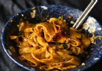 6、煮面。将煮熟的面捞出,放在菜码上。