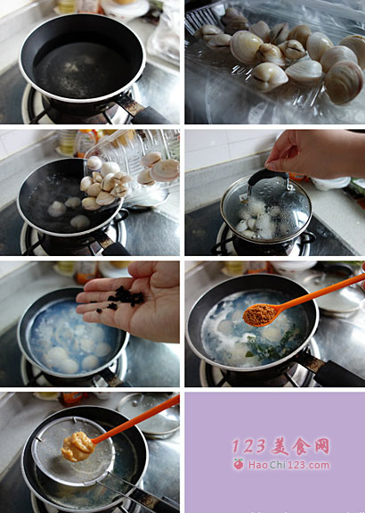 6、转小火,用筛漏溶入味噌即可。