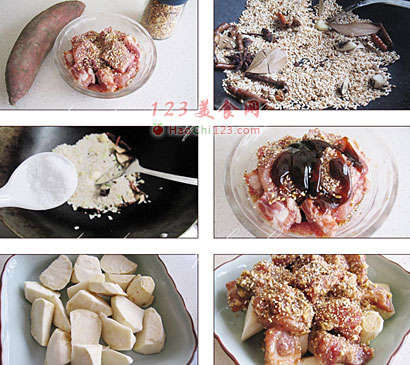 4、在传统粉蒸肉的基础上加入滋养肠胃的红薯,然后把肉换成脆骨,营养更全面而且更好吃哟。[LaoYanHuo.com]