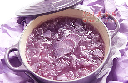 3、心型紫薯很容易煮烂,要最后放入锅里煮3-5分钟即可。