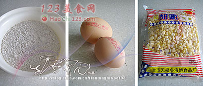 4、将玉米粒捞出入面糊中,加入盐拌匀。