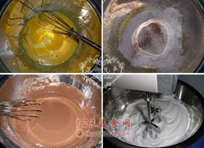 2、低筋面粉和可可粉混合,筛入到蛋黄糊中。