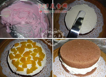 16、再抹上一层奶油,再压上一片蛋糕片。