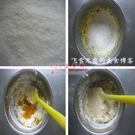 7、翻拌二下后,加入橙皮丁(糖渍橙皮切丁)。