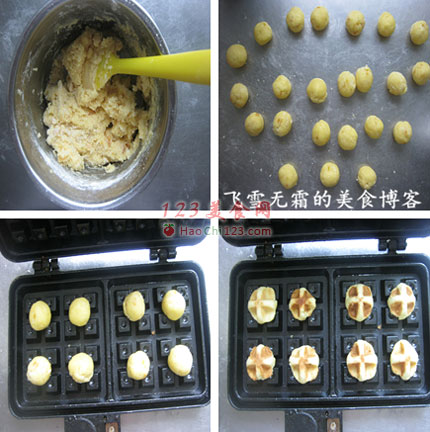 11、模具先预热,用小火烧一分钟左右,再放入小球。