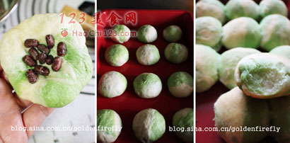 8、面包烤盘入以预热好的180度C烤箱中,烤焙约15-17分钟。烤好后立刻出炉,曲出脱模放凉,完成。