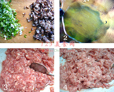 5、放入盐、鸡精、料酒、生抽、白胡椒粉、油、香油,搅匀后再放入葱末略搅。