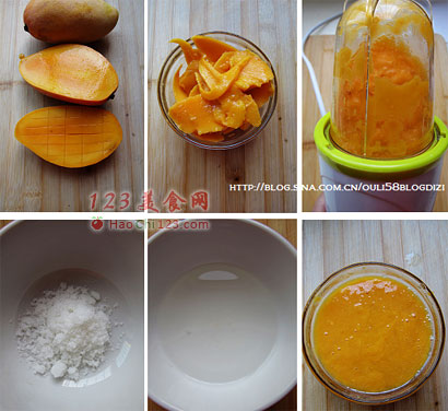 1、芒果去核剥皮,放搅拌机打成芒果浆。
