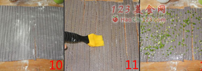 9、用批萨轮刀切割成宽约1厘米的条(带花边的批萨轮刀更好看)。