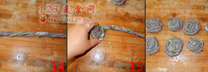 7、小葱切碎,油、盐、花椒粉、鸡精混合备用。