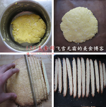 12、将切好片的杏仁脆饼放入预热好的烤箱中再烤10分钟即可。