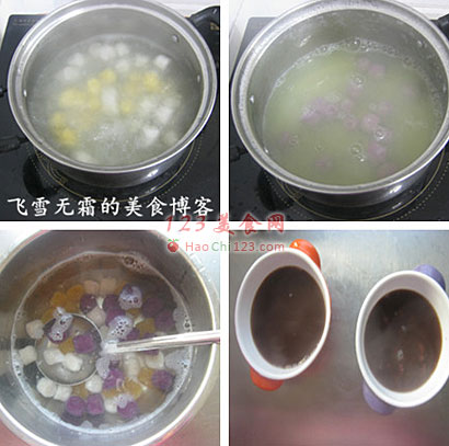 4、紫薯芋圆煮的时候会掉色,所以要分开煮。